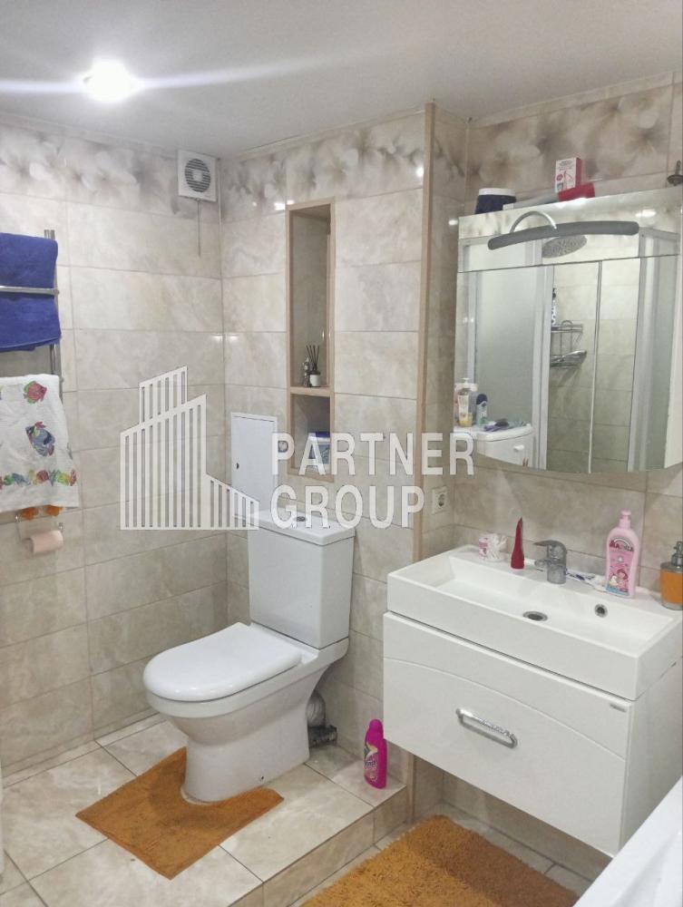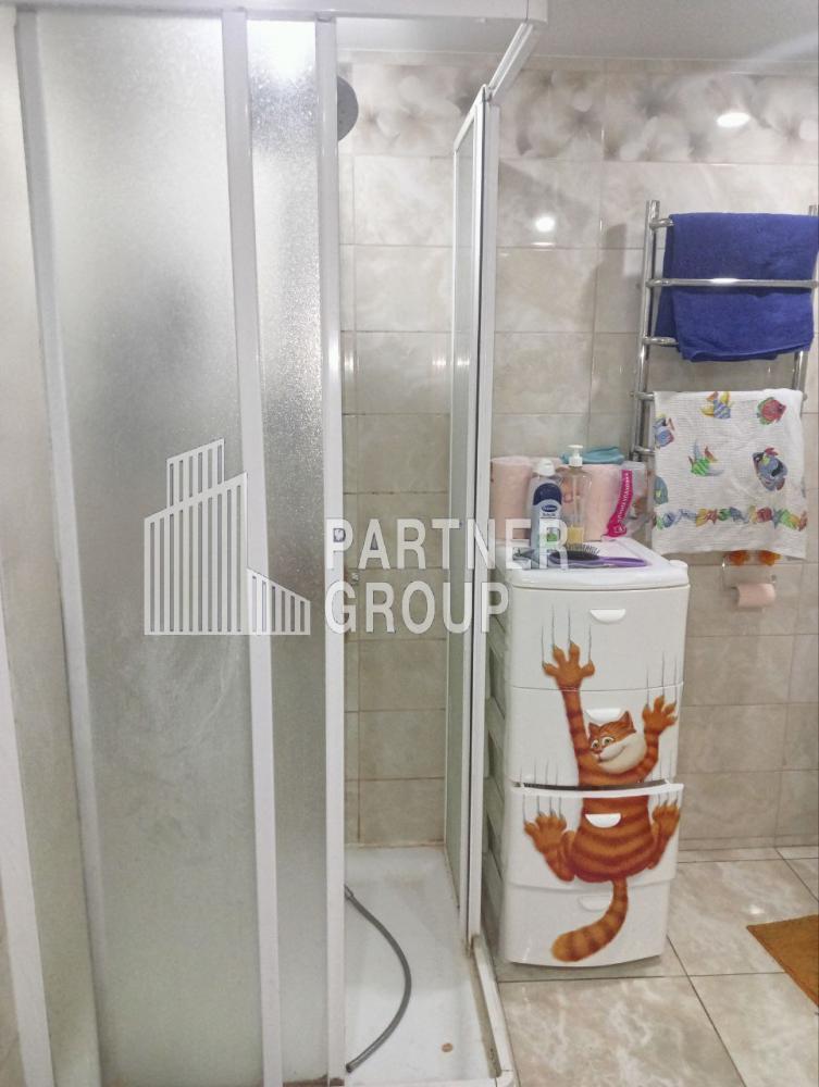 - Санузел совмещённый, просторный. В санузле расположена ванна, душевая кабина, унитаз, стиральная машина.
